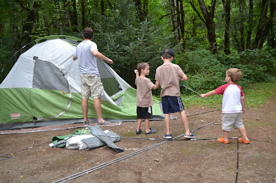 They all helped Daddy put up the tent.